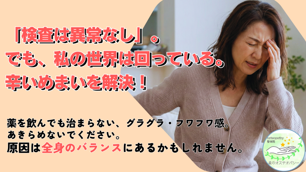 あなたの目が回るのは、身体が「助けて」と叫んでいるサインです。その声を、私たちが受け止めます。