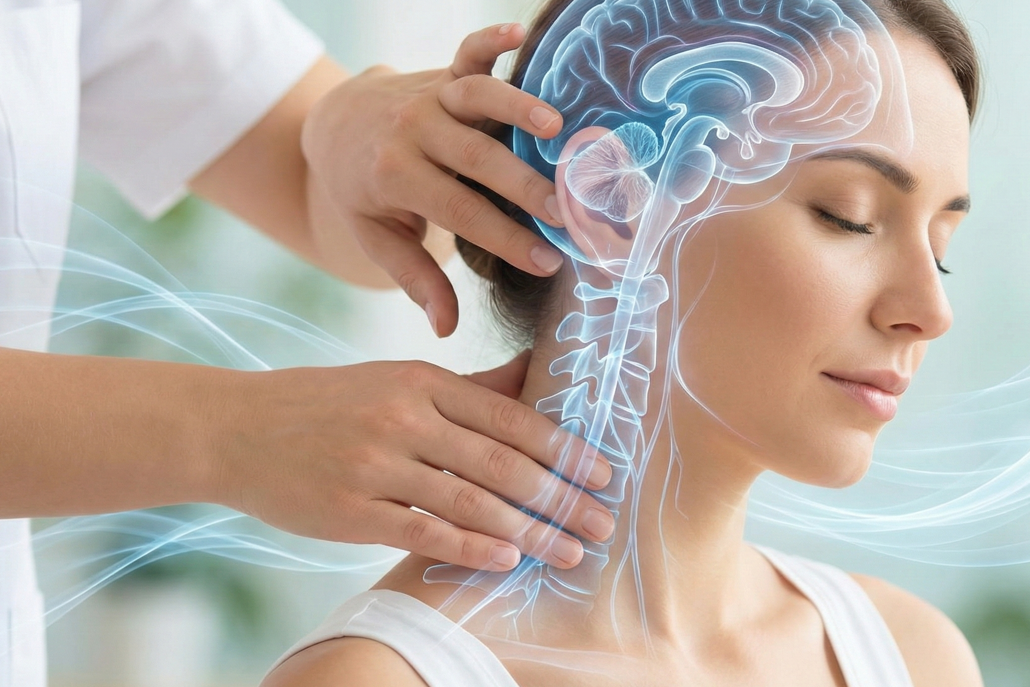 「頸性めまい」の主な原因となる首の骨のズレや、筋肉の緊張を優しく解放します。脳へと続く血管の圧迫を取り除き、クリアな状態へ導きます。